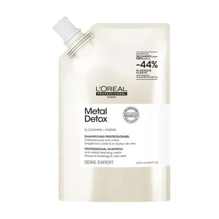 Serie Expert Metal Detox Refill Shampoo 1000ml is an anti-metal detox cleansing cream shampoo formulated with patented technology enriched with Glicoamine which neutralises metals inside the hair and gentle nourish hair fibres.