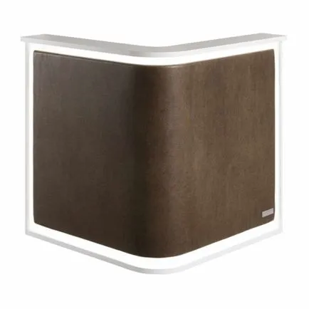 The Smart choice for the reception area has arrived! This stylish reception desk in white ash melamine commands attention upon entering the salon, with an upholstered front panel (available in a wide choice of colours) that curves at a 90° angle, allowing for the desk to be positioned in different ways, while still being compact enough to create extra space in the reception area. LED lighting beautifully accentuates the form of the upholstered front panel, while also adding importance to the reception desk. The Smart is also available with side display cabinets and side storage cabinets (also available separately).